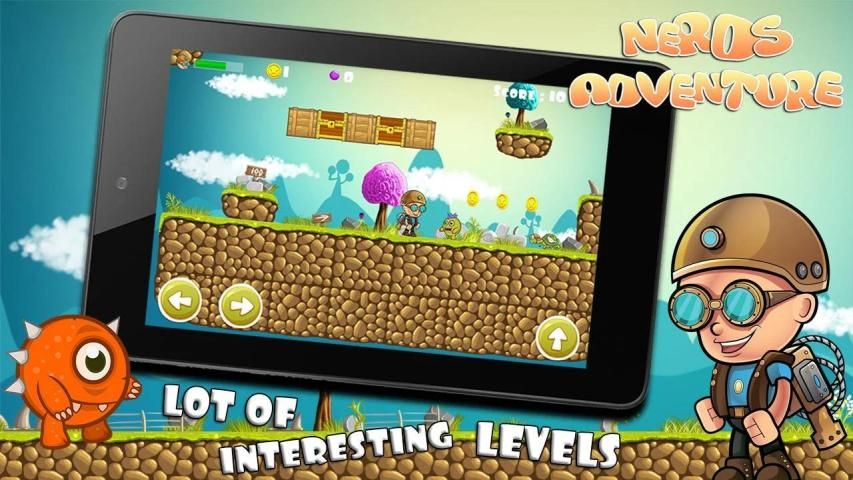 Nerds Adventure - colorful arcade platform game, where you as a nerd in glasses should pass through many challenging levels. Crowds of monsters and deadly abyss will appear on your way, but the dexterity of your fingers should help you to overcome all these difficulties! In this game you will find everything that fans of platformer need: kind geek character, interesting levels with a bunch of platforms, coins and chests, and bonus weapon that will help you deal with the monsters.