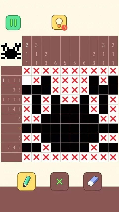 The Nonogram are from a fascinating Latin drawing game whose history dates back at least to the 18th century. The Nonogram is a black space in a specific position by interpreting a series of clues in an area that is all white squares. In the process, a hidden picture will gradually appear in front of you. Each number of figures is a unique piece of art.