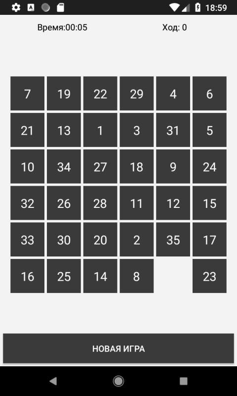 Пятнашки (Игра в 15) - это набор одинаковых квадратных костяшек с нанесёнными числами, заключённых в квадратную коробку. Длина стороны коробки в четыре раза больше длины стороны костяшек для набора из 15 элементов, соответственно в коробке остаётся незаполненным одно квадратное поле. Цель игры — перемещая костяшки по коробке, добиться упорядочивания их по номерам, желательно сделав как можно меньше перемещений.