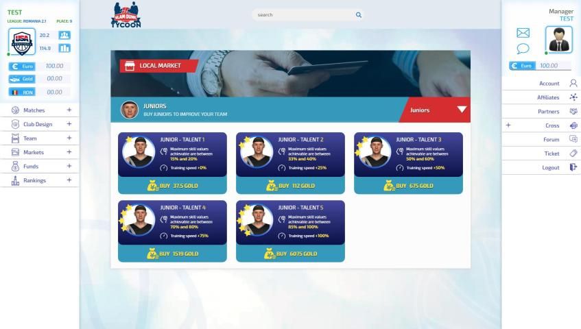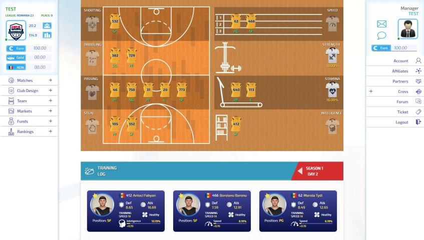 आप अपने खिलाड़ियों को प्रशिक्षित कर सकते हैं, वरिष्ठों को प्रशिक्षित कर सकते हैं, जूनियर्स खरीद सकते हैं जिसे बाद में मुख्य टीम में पदोन्नत किया जा सकता है जिसका उपयोग प्रतियोगिताओं में प्रवेश के लिए किया जा सकता है।