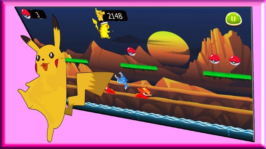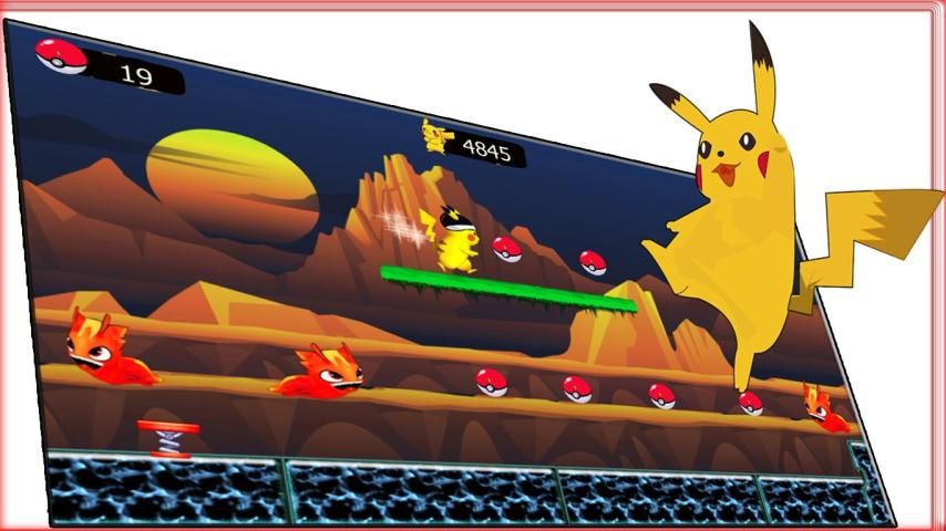अपने फ़ोन या टेबलेट स्क्रीन पर दबाने समय में कूद सुपर पिकाचु छलांग बनाने के लिए और pokeball एकत्र करता है और सिक्के ताकत हासिल है और यह भी खेलने के सभी चरणों में जंगली राक्षस और विभिन्न बाधाओं को दूर करने के लिए करने के लिए।