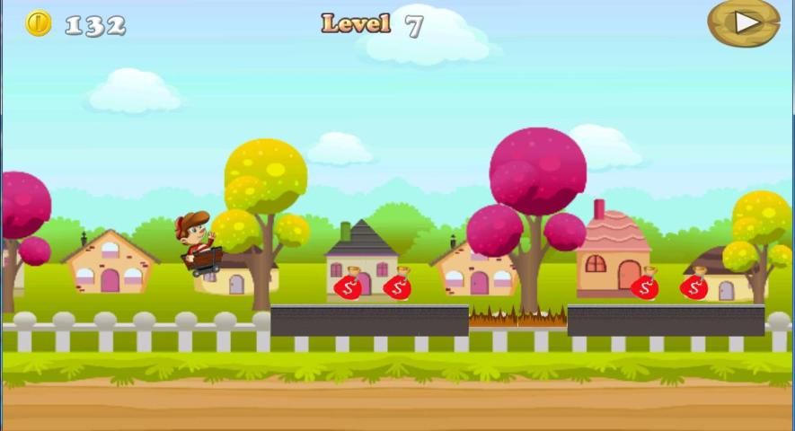 Tap screen or trackball to jump to avoid obstacles in your world adventure!