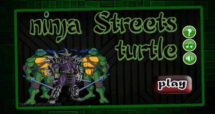 नायक निंजा सड़कों यहां कछुआ सटीक होना Serie "कछुए निंजा" से कछुआ निंजा नहीं है और कार्टून में tutles निंजा चरित्र के साथ कुछ नहीं करना है! वहाँ कोई schredder या यहाँ है जैसा कि आप देख सकते हैं लियोनार्ड, Donatello, माइकल एंजेलो .. ! यह मनोरंजन के लिए बनाई गई है !! अब यह इतना मज़ा के साथ उपलब्ध है। प्रकृति में चलाने के लिए ... रोमांच से भरा एक मजेदार दुनिया में चलाएँ। इस पर से कूद जाओ