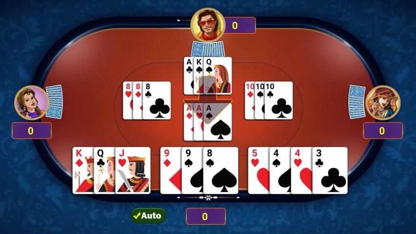 হাত এর শক্তি : তিনপাত্তি বা অন্য তিনকার্ড গেইমের মতো : ট্রয় > কালার রান > রান > কালার > পেয়ার > সিঙ্গেল