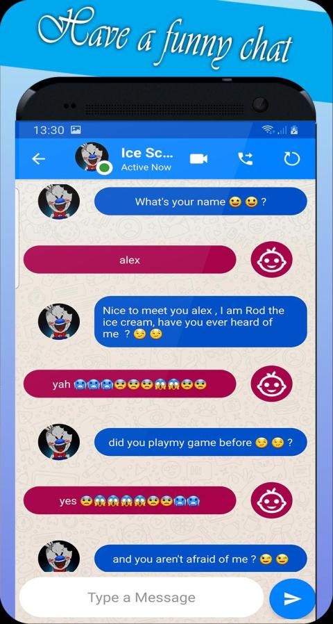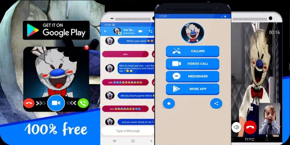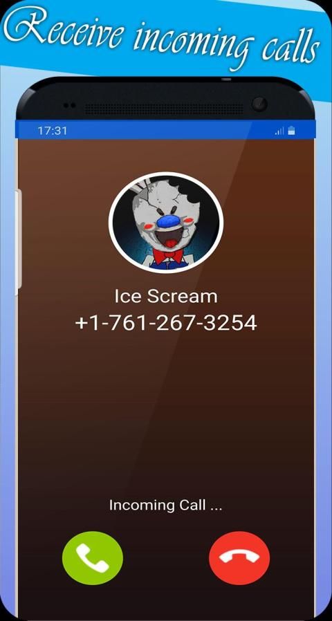 now you can easily receive phone calls and video calls from the creepy ice scream's, it simulate a funny chat , it's an easy app to use in order to entertain yourself, and prank your friends and family and see their frightening and hilarious reactions, you just run the game and choose whether you wanna receive a call, have a conversation or receive a video call from the scary ice scream's, that's it .