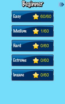 इस एक लाइन गेम में 1500 पहेलियाँ, 5 विशेषज्ञता स्तर, प्रत्येक विशेषज्ञता स्तर के लिए 5 कठिन स्तर शामिल हैं।