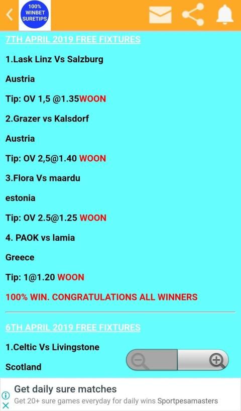 100% WINBET SURETIPS is a very precise app that makes sure the users access accurate tips for their betting adventure.
