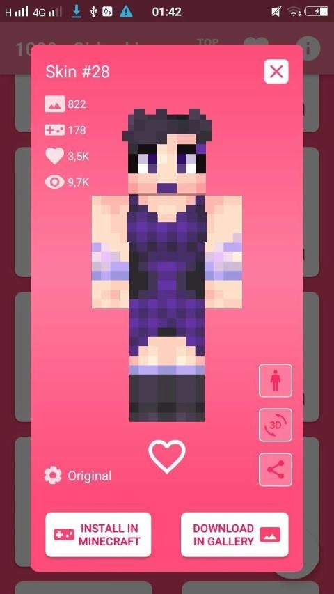 Girls Skins for Minecraft PE is a large collection of beautiful and popular skins that are available completely free. If you like playing Maincraft and looking for the right skin, then this application is definitely for you! Wear the most beautiful and attractive skin on a multi-player server and show your personality!
