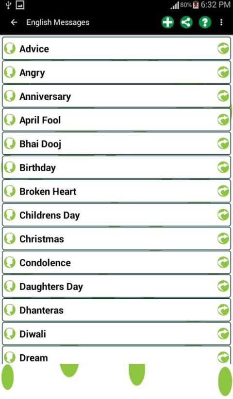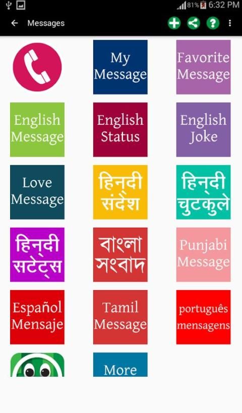 Nikmati koleksi pesan dalam bahasa yang berbeda untuk semua kesempatan untuk berbagi pada Chatting dan setiap jaringan sosial lainnya, SMS dan E-mail.