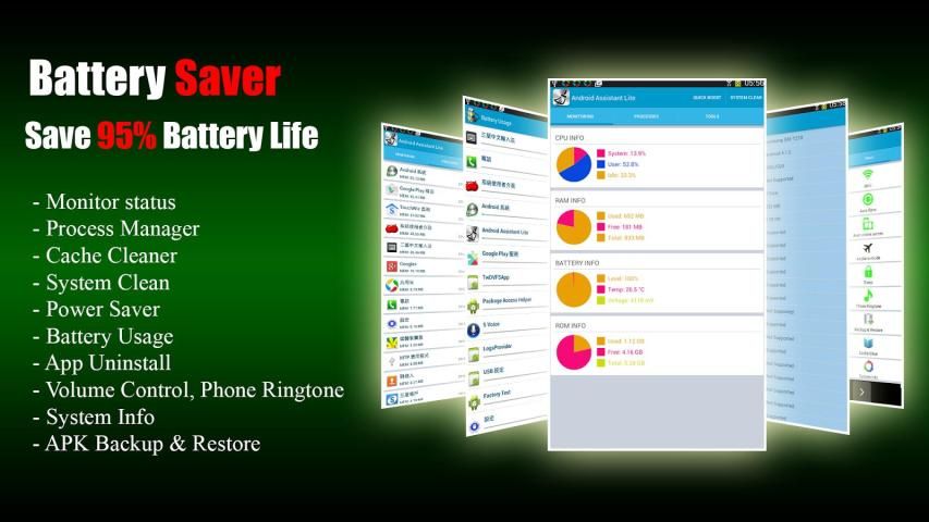 - Battery Saver, Battery Usage