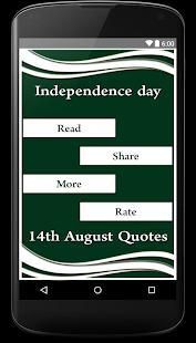 Aplikasi yang indah ini telah didesain secara khusus pada kesempatan dari 14 Agustus dan sebagian besar berisi kutipan ucapan populer dan mengagumkan tentang hari kemerdekaan.