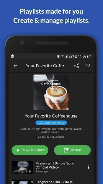 With 1Music you can access to all of YouTube videos and lets you play them in a handy floating popup for a multitasking music listening experience.
