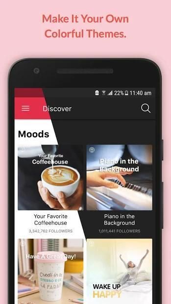 ● Playlists made for you, categories by moods as: Songs to sing in the car, Mood Booster, Your favorite coffeehouse, Wake up Happy..
