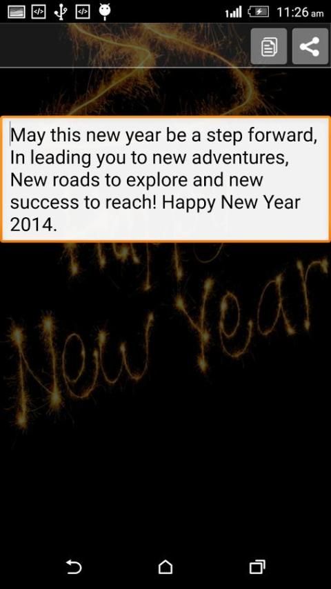 • Aplikasi ini juga menyediakan koleksi besar Tahun Baru ingin pesan, sms dan kutipan.