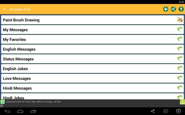Kirim ke mensaje de estado Inglés sebuah Alguien utama, pero carecen de Inspiracion Gunakan Mensajes para Medios de Comunicacion sosial, una colección más grande de online / offline de Aplicaciones con diversas Categorias de Inglés SMS, Bromas y mensajes. Esta aplicación es lo suficientemente fleksibel como para compartir mensajes sebuah cualquier Medios de Comunicacion sosial, con opciones para compartir