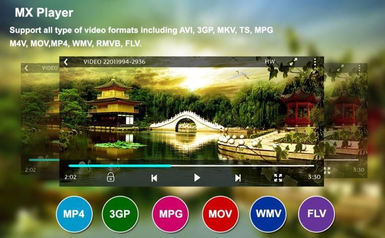 Video player mendukung semua format video termasuk AVI, MP4, WMV, RMVB, MKV, 3GP, M4V, MOV, TS, MPG, FLV dll