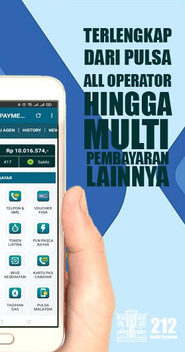 Aplikasi android 212 MULTI PAYMENT adalah aplikasi mobile gratis untuk member-member setia 212 MULTI PAYMENT di mana pun berada. Aplikasi ini memudahkan Anda dalam melakukan berbagai transaksi seperti pengisian pulsa, pembelian token listrik, pembayaran tagihan pasca bayar, pembelian voucher game, dll.
