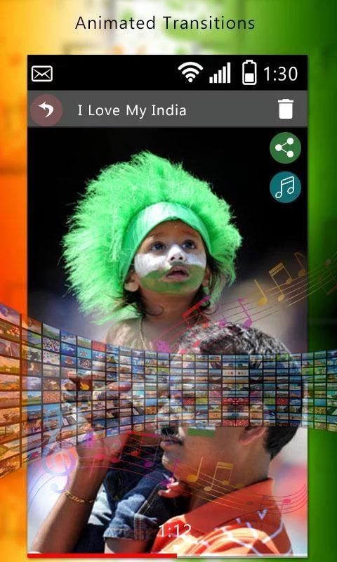 Hari Republik Maker Video Dengan aplikasi Music membantu Anda untuk membuat Gambar Slide-show dari ponsel Anda dalam hitungan detik, bersama dengan waktu slide, frame dan efek filter. Buat indah Music slideshow dan berbagi dengan teman-teman dan keluarga untuk acara-acara terbaik dalam hidup.