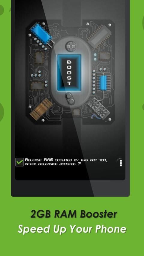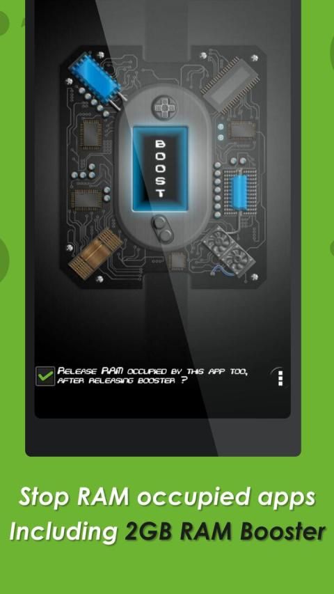 2 GB RAM Booster does not run in background, so it won't consume memory in background like other apps here in the play store does. You just need to fire up the app & tap on boost. It will do the rest.2 GB RAM Booster can make games on your android run faster by clearing up the resource draining applications.