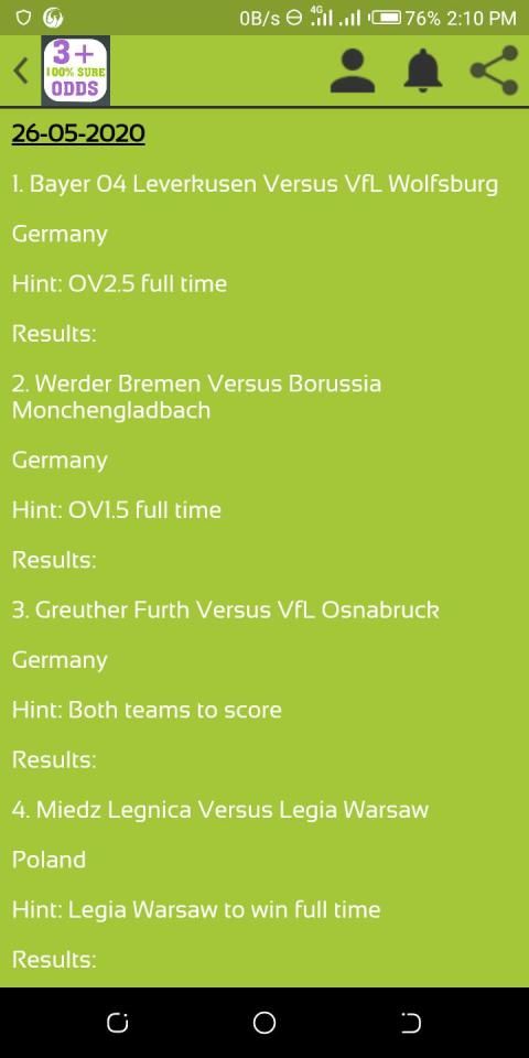 Ratusan aplikasi baru di rilis setiap minggunya. 20,000+ Pengguna mendownload 3+ 100% SURE ODDS versi terbaru di 9Apps secara gratis! Untungnya, mudah untuk mendapatkan aplikasi populer ini. Aplikasi HOT ini di rilis tanggal 2020-05-28. Untuk informasi mobile apps lainnya, Anda dapat mengunjungi situs resmi kami - id.9Apps.com .