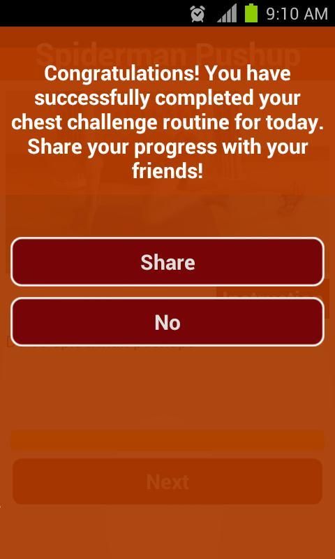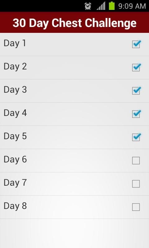 Hanya menginstal aplikasi ini dan mengikuti rutinitas sehari-hari. Pengingat kami secara otomatis akan mengingatkan Anda untuk latihan sehari-hari. Hari libur akan membantu otot Anda pulih. Menandai hari-hari Anda telah menyelesaikan untuk melacak kemajuan tantangan Anda. Jangan menipu! Ini sesederhana itu.