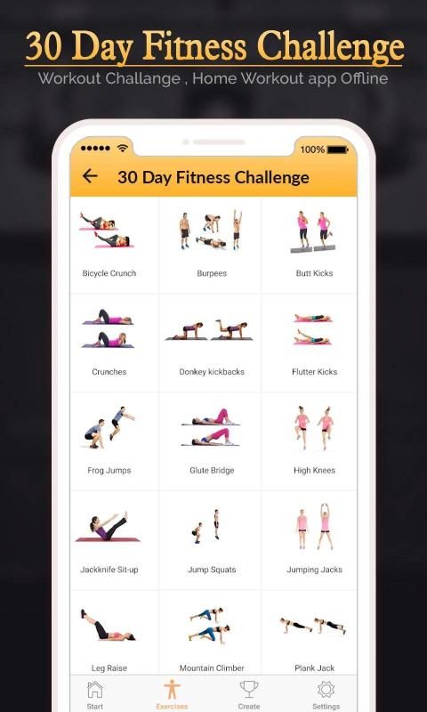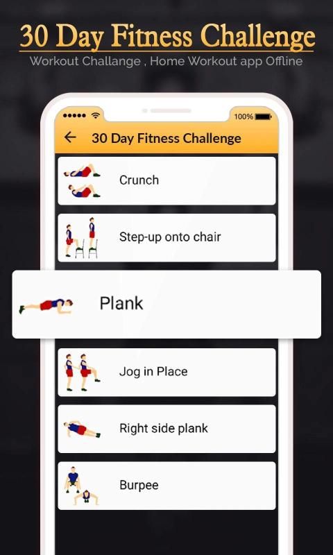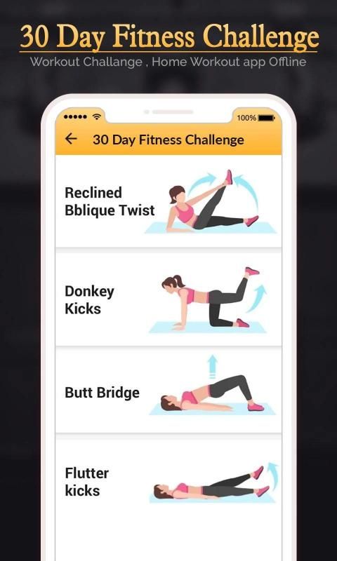 ► The 30 Day Fitness Challenge is a simple 30 day exercise plan, where you do a set number of ab exercises each day with rest days thrown in! The workout increases intensity slowly and day 30 will test anyone. The app is suitable for both men and women of any ages.