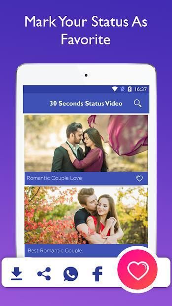 30 Seconds Video Status is one of the best app for all video song status for whatsapp.