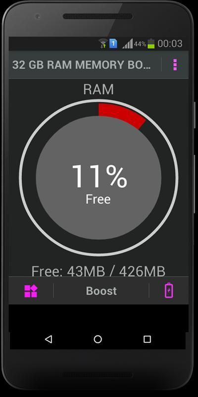 Banyak perangkat Android pak dengan jumlah terbatas RAM dan daya tahan baterai hingga 32GB RAM Booster Membuat Beberapa ruang di telepon Anda.