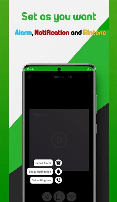 1. Open this application, you can press the " play " button to listen to the MP3 music. If you like one of the MP3 music you can set it as your default phone ringtones, alarm or notification.