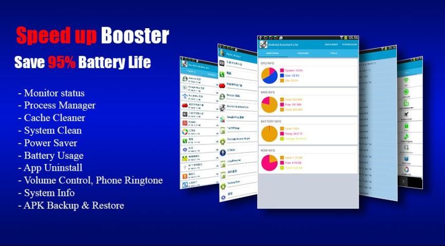 Terbaik dari alat sistem utilitas yang meningkatkan kinerja androids Anda. Ini meningkatkan kinerja ponsel Anda dan menghemat baterai. Rupanya yang meningkatkan os sistem dan memori. Ini juga memiliki manajer proses yang memungkinkan Anda bersih aplikasi sistem berjalan. Ini termasuk dengan Backup & fitur yang membantu Anda aplikasi backup sebagai file yang apk dan Restore mengembalikan ketika Anda membutuhkan them.System Cleaner fitur membersihkan Cache, Thumbnail Cache, Log File, Folder Kosong, Browser History, Clipboard, Sejarah Market, Gmail Sejarah, Google Map Sejarah.