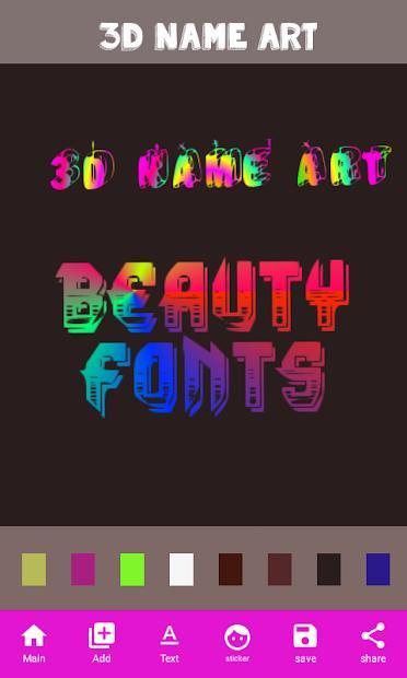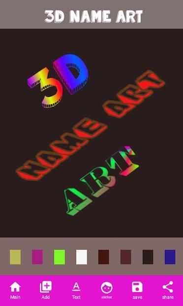 Nama 3D Art adalah aplikasi yang menggunakan waktu Anda dengan cara yang lebih lucu untuk membuat cara mudah nama Anda dengan menerapkan beberapa teknik seni dan logika untuk membuat gambar profil mengagumkan dan besar mencari.