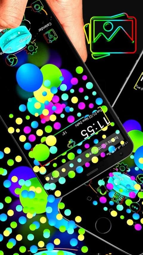 Hapus kebodohan layar Anda. setelah menerapkan tema 3D neon ball gravity wallpaper dan ikon Anda akan memberikan tampilan yang cerah.