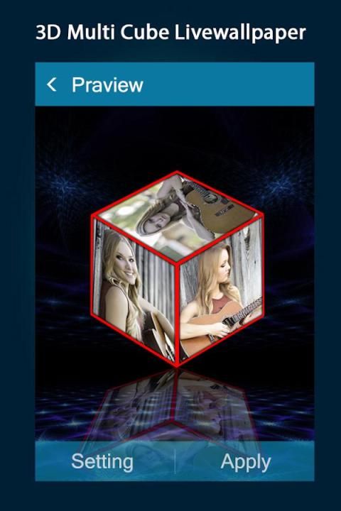 Mengatur foto favorit Anda dan gambar di setiap sisi kubus 3D dan menyesuaikan cube dengan menetapkan ukuran, arah rotasi kubus dan kecepatan. Anda juga dapat mengatur posisi kubus seperti pusat, kiri, atas dan bawah layar.