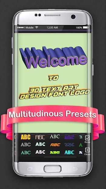 3D photo editing was not as easier as before. 3D Text Art - Design Font Logo can also use as intro maker for your videos, use 3d logo maker app to design intro maker and place them on videos to promote. Design text in text maker and adjust on screen, rotate them in curve of 360 degree, design your own logo to custom with logo designer and use cool text 3d to give them a rich look. 3d photo text logo font maker application is free animation software to download an use to design amazing 3d text, logos and intro for your videos and photos or for poetry and quotes. It is full of fun application to use.