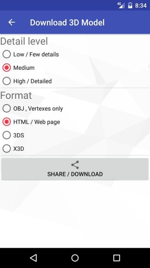 Fixed bug that preventing phones with Android 4.4 or earlier to use photo buttons. Improved quality of 3D Model generation + other minor bug fixes.