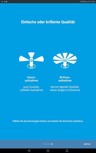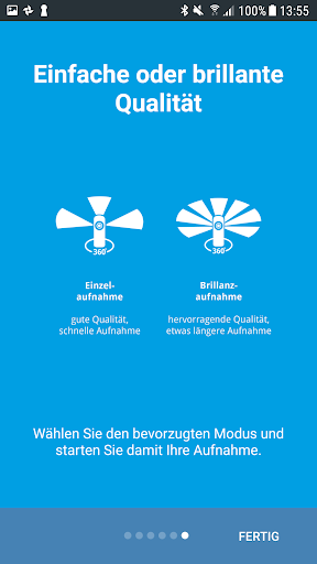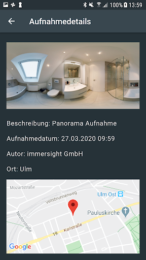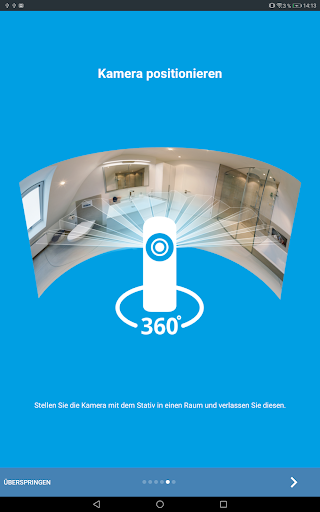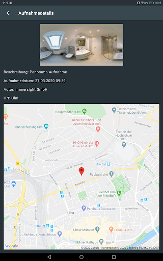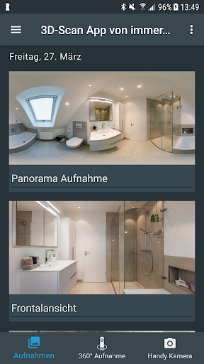 Die 3D-Scan App ermöglicht es 360°-Panoramafotografien von real existierenden Räumen zu erstellen. Dafür verbindet sich die App per WiFi mit hierfür vorgesehener Hardware (siehe www.immersight.com). Damit können Räume und Ausstellungen digitalisiert und z.B. als Virtuelle Ausstellung genutzt werden. Zukünftig können mit dieser Lösung auch 3D-Scans von Räumen erstellt werden.