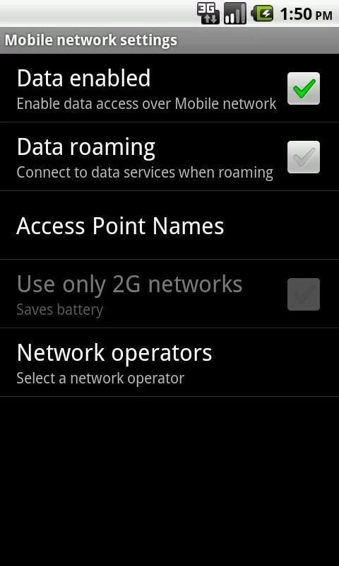 Aplikasi ini adalah Widget yang membuatnya mudah bagi Anda untuk beralih antara jaringan 3G dan 2G, Pilih Network Operator, Periksa / hapus centang Sambungan Data.