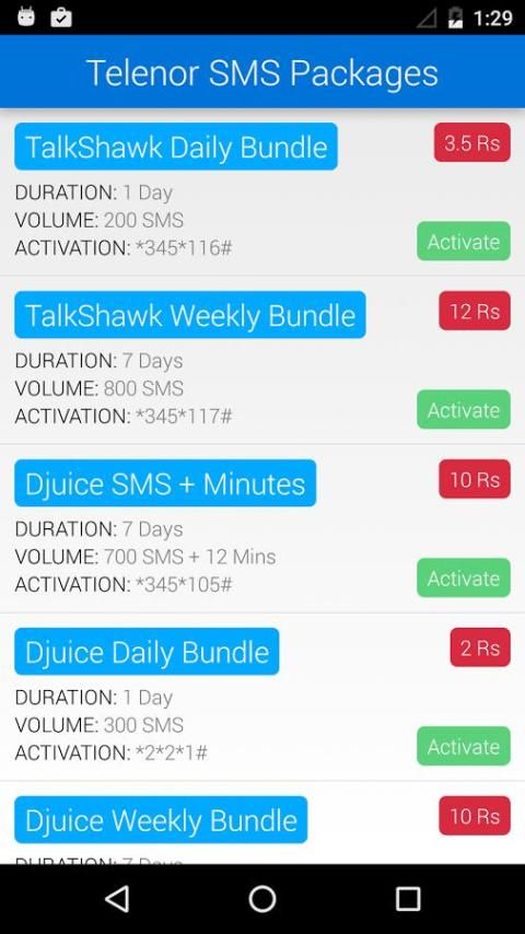 Paket 3G & SMS adalah aplikasi android ramping, yang menyediakan semua pengguna ponsel Pakistan dengan keuntungan untuk memilih dari pilihan terdaftar dari SMS, paket internet Call, dan 3G jaringan mobile Pakistan termasuk Mobilink, Warid, Ufone, Telenor dan Zong untuk memudahkan akses pengguna dan aktivasi. Melalui aplikasi ini sangat baik, Anda dapat memeriksa: