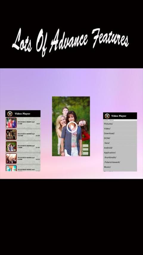 Memungkinkan Watch acara TV, film, video serta disimpan secara lokal FLV, MKV, MP4, MP3, AVI, MOV, WAV, Video FLAC files.3GP / AVI / MP4 HD Video Player
