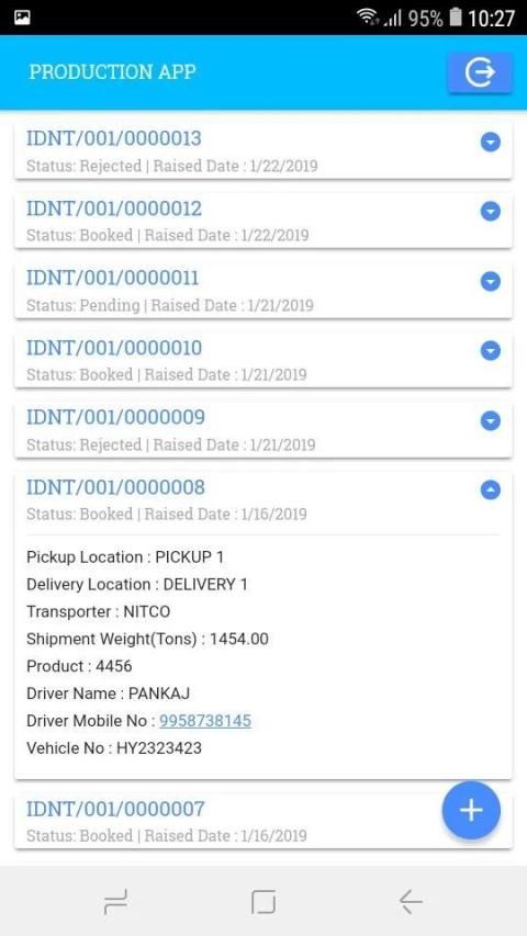 This application enable's user's to raise the indent to the transporter, after raising the indent one can track the empty vehicle once the transporter will accept the indent and will fill all the details of the indent. The time of reporting the vehicle in the application will be recorded and after loading get completed the dispatch time of the vehicle will also be recorded. The production executive will then upload the WEMA to finally dispatch the vehicle to drier.