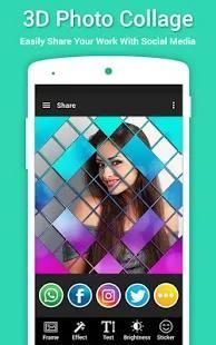 Collage pembuat 3D aplikasi ini adalah kolase foto editor yang sangat kuat juga karena berbagai pilihan editing foto yang ditawarkannya.
