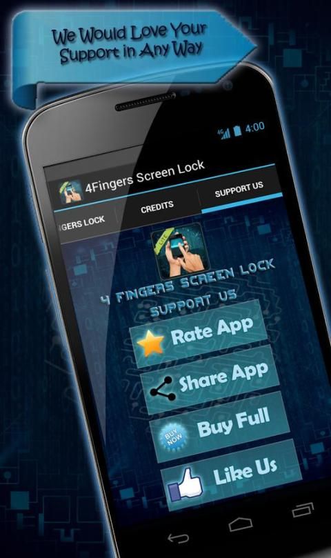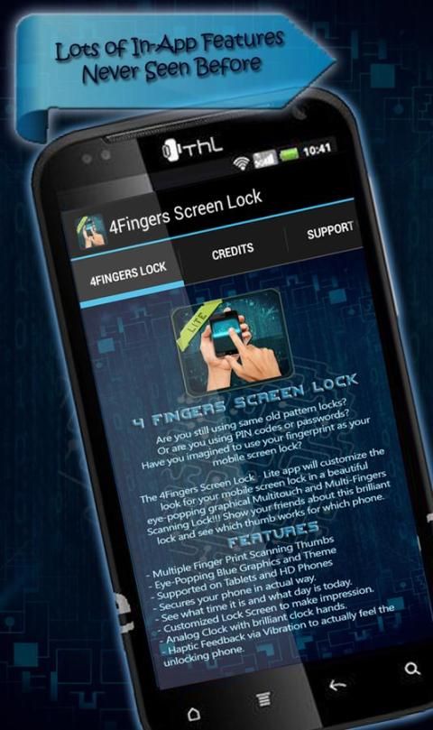 The 4Fingers Screen Lock - Aplikasi Lite akan menyesuaikan tampilan untuk kunci layar ponsel Anda dalam indah eye-popping grafis Multitouch dan Multi-Fingers Scanning Lock! Tampilkan teman Anda tentang kunci brilian ini dan melihat mana ibu bekerja yang telepon.