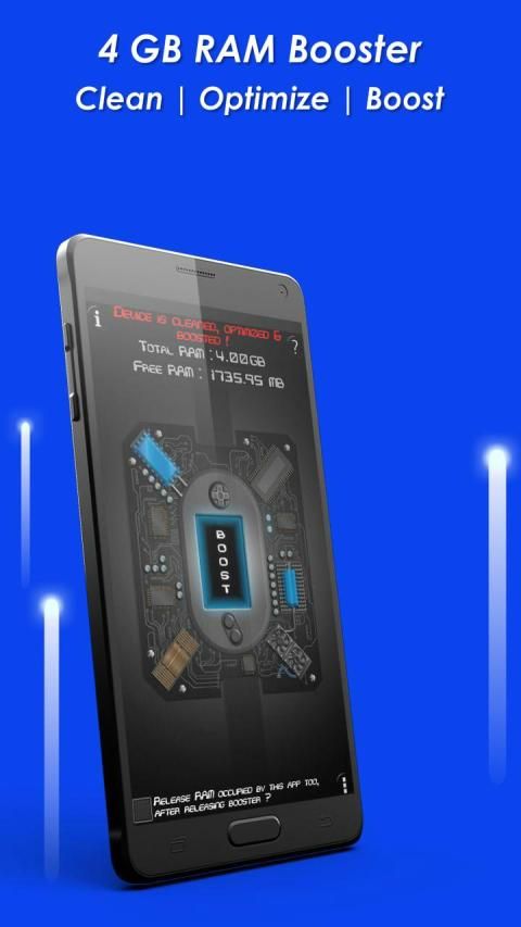 Sering kali ponsel kita cenderung hang. Satu-satunya solusi yang kami temukan adalah me-restart perangkat. Aplikasi ini membunuh aplikasi Background & membebaskan memori yang digunakan oleh aplikasi lain, cukup dengan 1 ketukan. Setelah menggunakan 4 GB RAM Booster Anda tidak perlu lagi me-restart perangkat Anda. Ini akan meningkatkan kinerja perangkat android Anda!