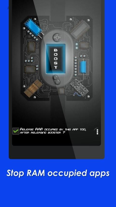 4 GB RAM Booster kills all the RAM occupying apps which keeps running in the background as well as the foreground apps like itself. You can also kill 4 GB RAM Booster to release RAM occupied by it; which gives instant speed boost by cleaning, optimizing RAM.