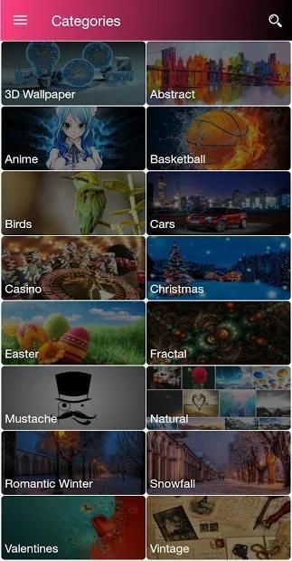 > Aplikasi ini menyediakan daftar kategori yang kaya untuk memilih 4K HD Wallpaper terbaik pilihan Anda
