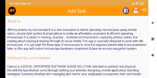 Aplikasi ini dirancang khusus untuk bekerja dengan mikroskop 4m, itu baru memulai untuk jenis mikroskop ini untuk merekam & mengatur data pasien & dokumentasi