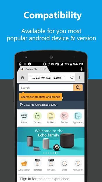 Light-weigh: Browser is thin size 5MB and doesn’t load your device’s memory (RAM),your device runs smoothly.
