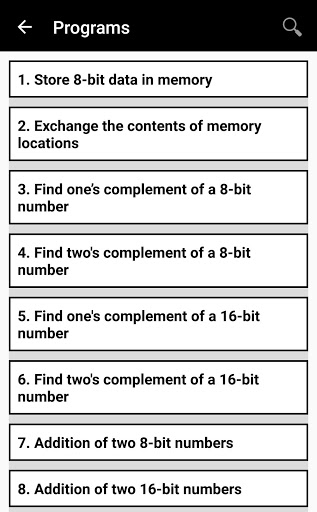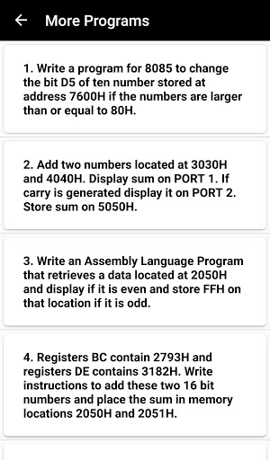 This application consists the basic example of 8085 microprocessor. This app is developed to help student for the better understanding of 8085 Microprocessor.