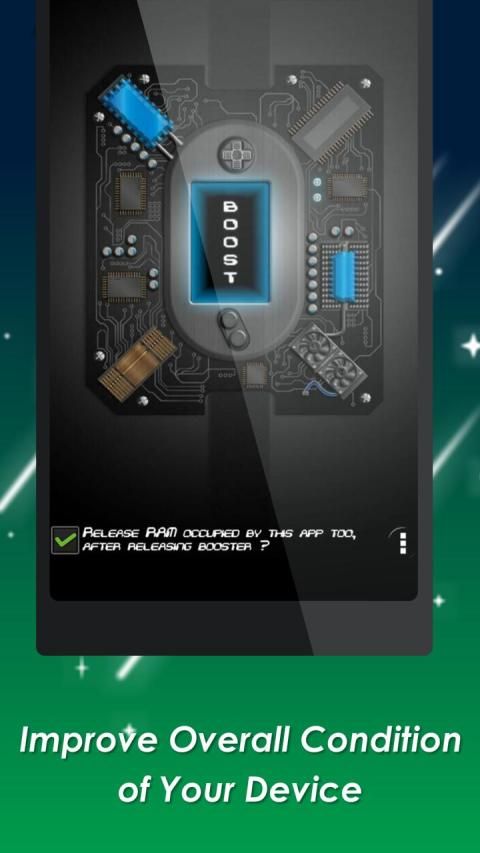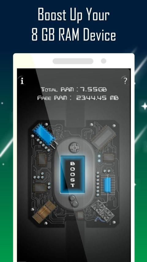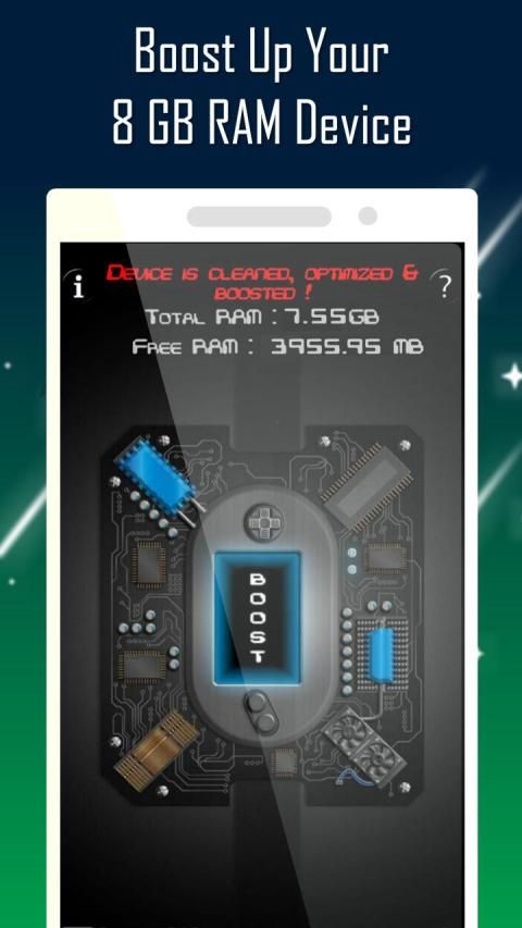 8 GB RAM Booster is the best app here to clean RAM, memory, improve battery life & to boost up device to it's optimum speed. 8 GB RAM Booster works best for the devices having RAM less than 8 GB. By using single tap you can boost up your device. It automatically kills all the memory occupying apps and processes. 8 GB RAM Booster also kills the foreground running apps including itself to free up the memory.