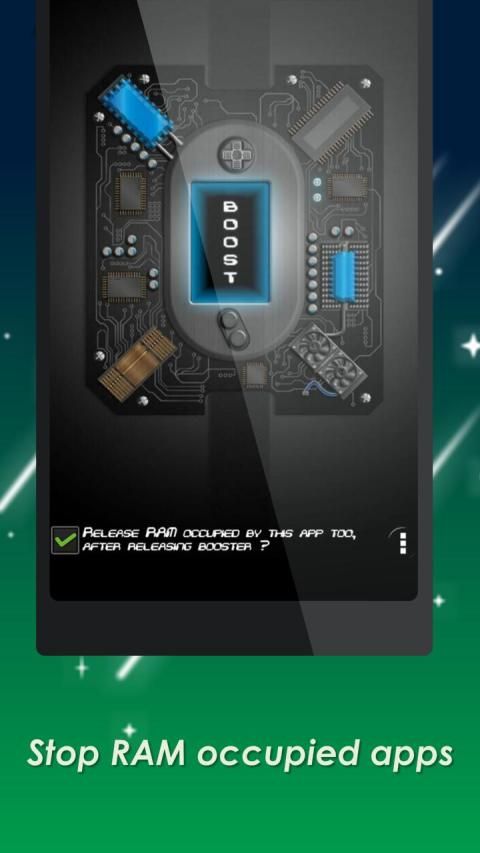 8 GB RAM Booster kills all the RAM occupying apps which keeps running in the background as well as the foreground apps like itself. You can also kill 8 GB RAM Booster to release RAM occupied by it; which gives instant speed boost by cleaning, optimizing RAM.